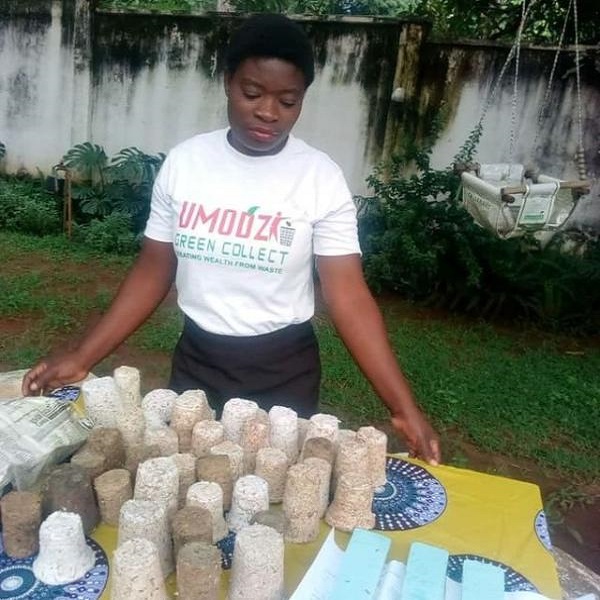 The women are taught how to produce the eco friendly briquettes of three different kinds. Carbonized, un Carbonized and Honeycomb briquettes. Umodzi Green Collect trains the women on how to operate machinery and how to turn the waste collected into briquettes. The branded briquettes products are eventually sold at different market fairs around the community.